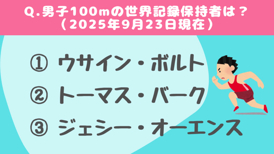 (2025年9月23日現在)陸上男子100mの世界記録保持者は?