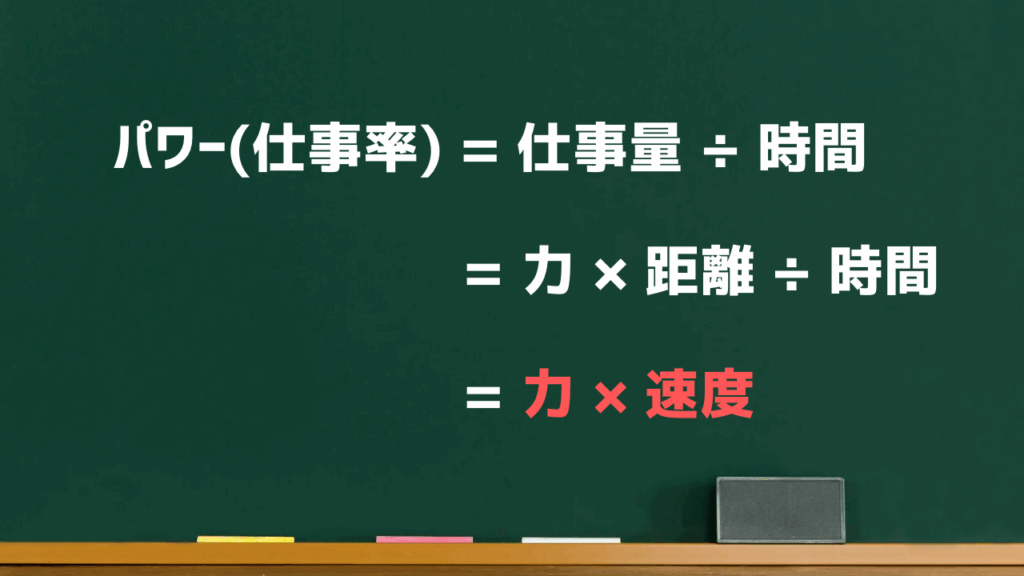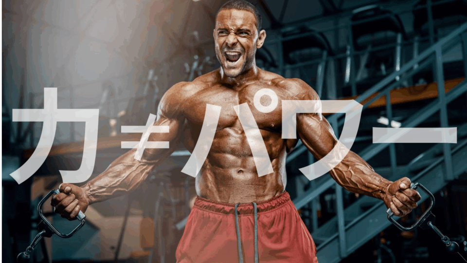 なので、筋肉ムキムキでも動きが遅ければパワーは低いと言えますし、アームレスリング(腕相撲)の選手がものすごい筋力で相手の腕を倒しにかかっても、相手が同じ力で返してきて腕が動かなかったら(速度がゼロなので)パワーはゼロです。