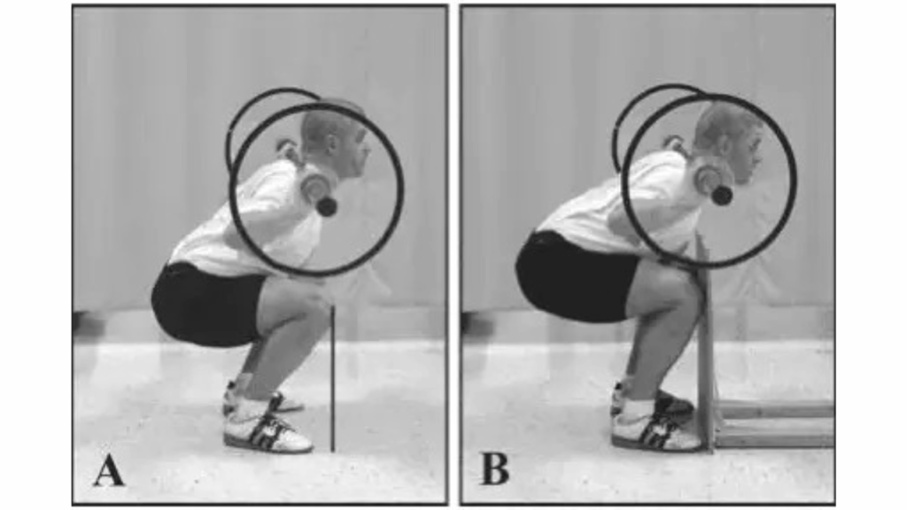 特にFryら(2003)の研究では、膝を前に出さないスクワットは膝関節へのトルクを約22%抑えられるものの、股関節と腰へのトルクはおよそ10倍以上増えると報告されています。