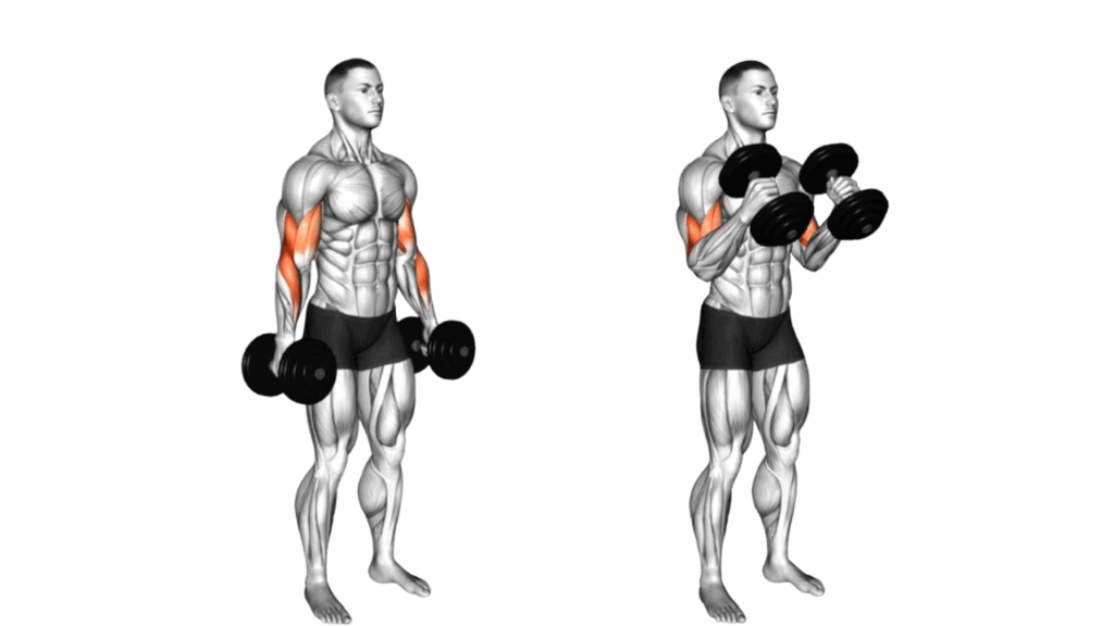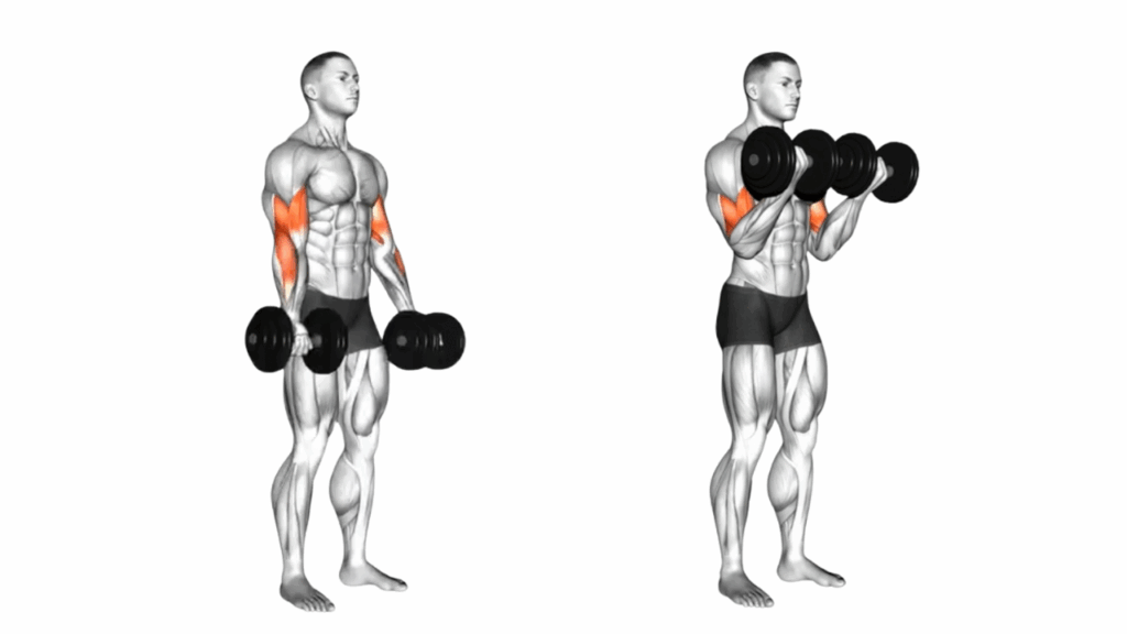 アームカールは主に肘を屈曲させる動きですが、その過程で複数の筋肉が関与します。以下が代表的な筋肉です。