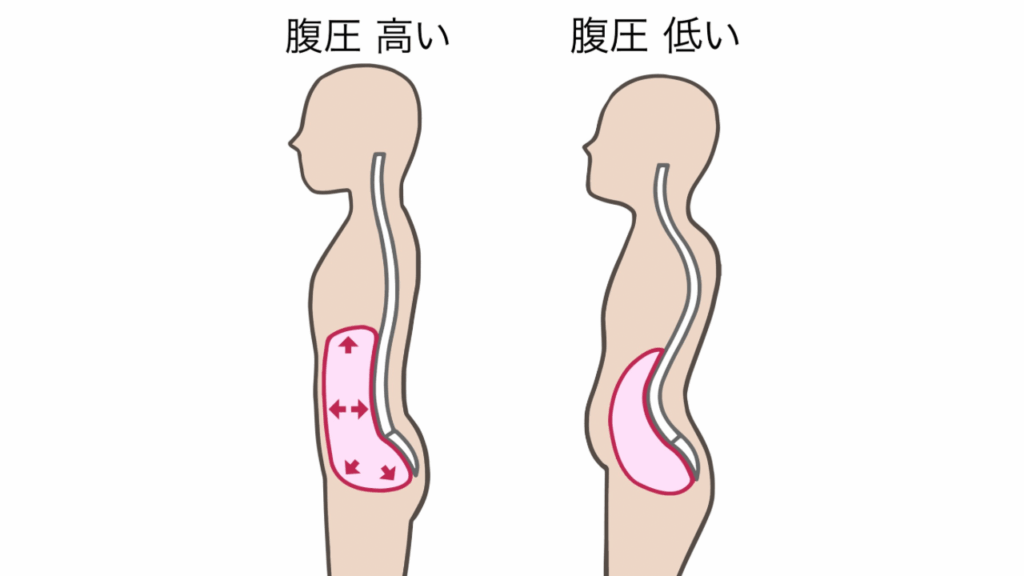 腹腔(ふくくう)という、お腹の中にある空間に空気や内臓が入っていて、その空間を周囲の筋肉がギュッと締めることでその内側の圧力が高まります。