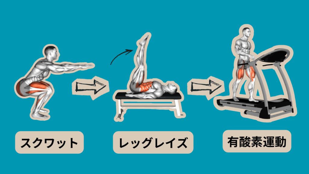 運動は有酸素運動のみに偏らず、筋トレを併せて行うことで代謝の底上げをしましょう。端的に言えば、お腹の脂肪を落とすには 腹筋を鍛えるよりもスクワットの方が有効です。
