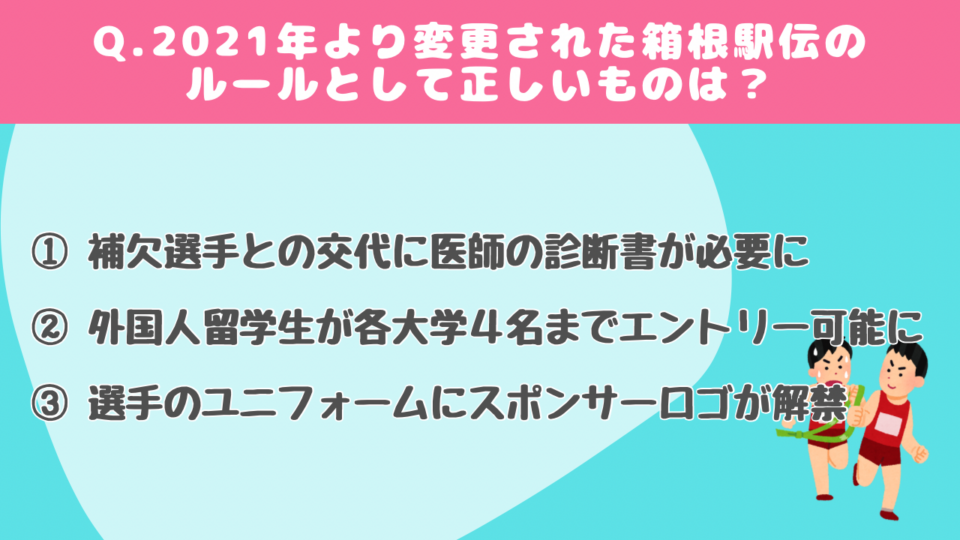 2021年より変更された箱根駅伝のルールとして正しいものは?